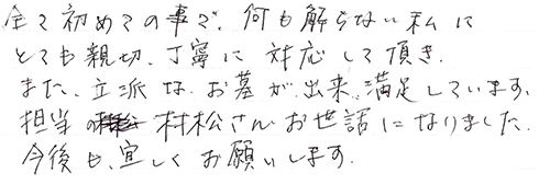 全て初めての事で何も解らない私に、とても親切、丁寧に対応して頂きました。