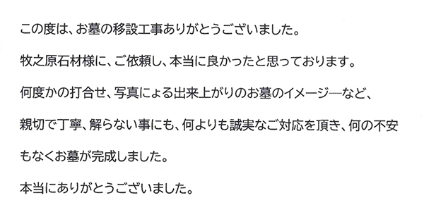 牧之原石材様に、ご依頼し、本当に良かったと思っております。